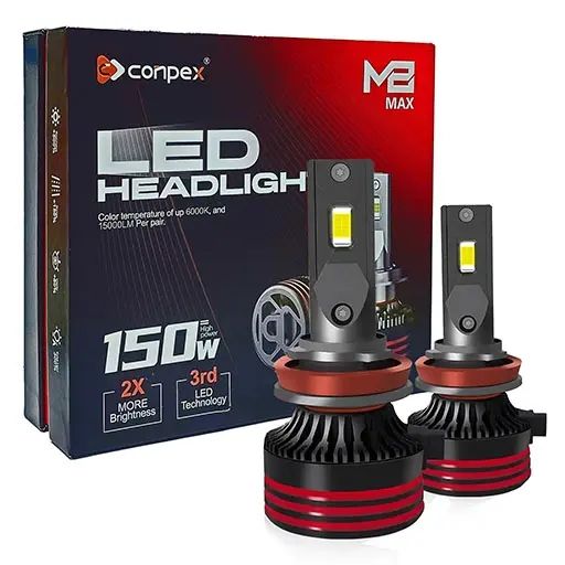 هدلایت کانپکس M8 MAX یک کیت هدلایت LED با طراحی مدرن و توان بالا است که در سال ۲۰۲۴ معرفی شده است. این محصول از بدنهای آلیاژی با مقاومت بالا بهره میبرد و با استاندارد ضد آب IP65، برای شرایط سخت جوی مناسب است. هر لامپ مصرفی معادل ۷۵ وات داشته و خروجی نوری تقریباً ۱۵۰۰۰ لومن (برای جفت لامپ) ارائه میدهد. بازه ولتاژ کاری ۱۲ تا ۲۴ ولت است و دمای رنگ نور آن حدود ۶۰۰۰ کلوین (سفید یخی) است. عمر مفید لامپها تا ۳۰,۰۰۰ ساعت اعلام شده و برخورداری از درایور CANBUS